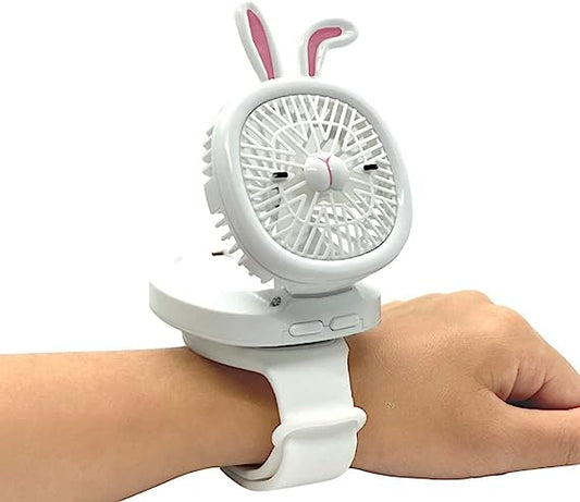 Battery Operated Portable Wrist Fan - Adjustable Speed, Comfortable Wrist Strap, USB Rechargeable, Colorful LED Lights - Stylish Cute for Kids Boys Girls Indoor Outdoor Travel (White)