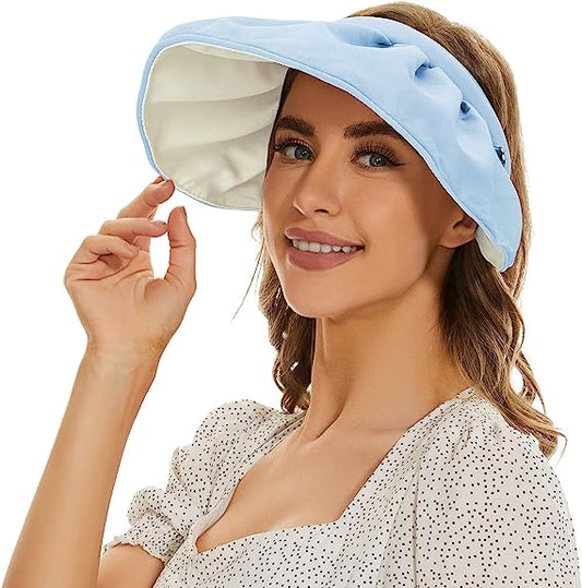 UPF 50+ Wide Brim Sun Hat Womens Sun Visor Hat Summer Beach Hats for Women Foldable 2 in 1 UV Protection Headband