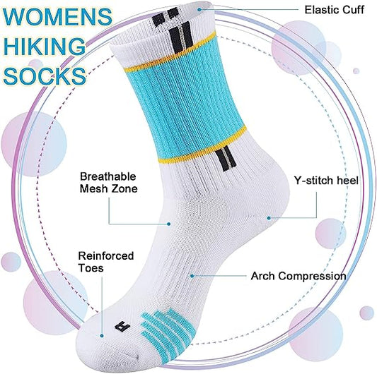 Womens Athletic Crew Socks Performance Cushioned Outdoor Hiking Moisture Wicking Socks (5 Pairs)