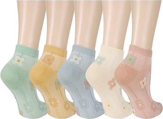 5/10-Pairs Women’s Ankle Socks Soft Cotton Aesthetic Crew Low Cut Socks with Cute Cartoon Pattern