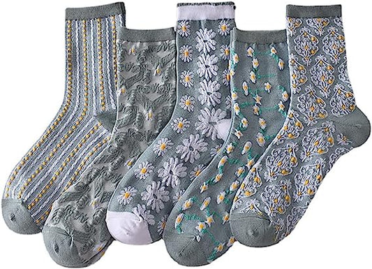 6/12 Pairs Womens Daisy Cotton Socks Vintage Patterned Crew Novelty Ankle Cute Floral Casual Dress Socks
